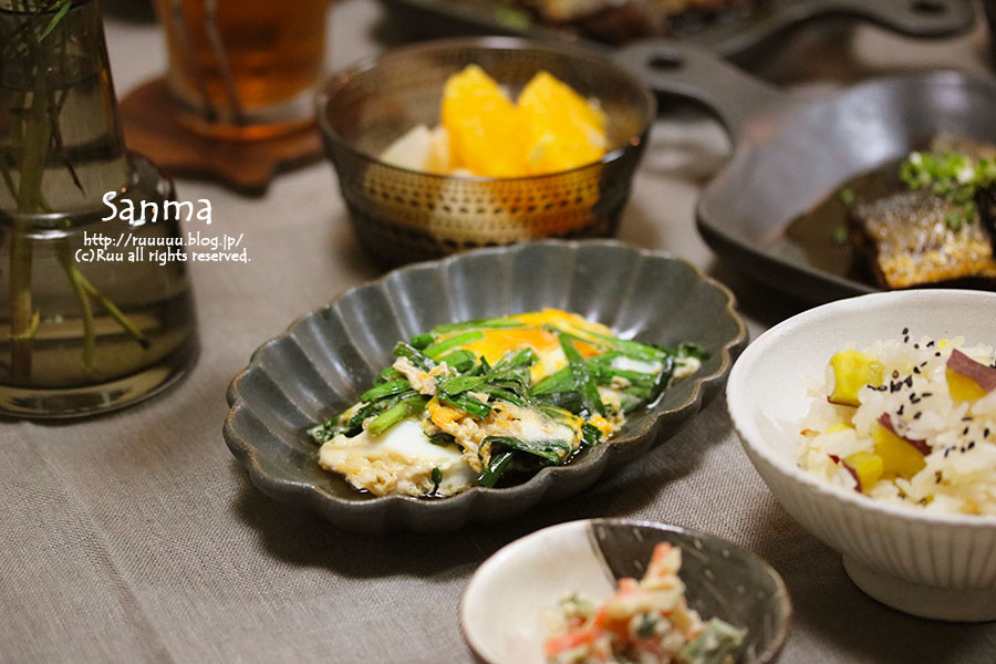 秋刀魚にさつまいもご飯に梨に・・・と、これぞ「秋」な晩ごはん。