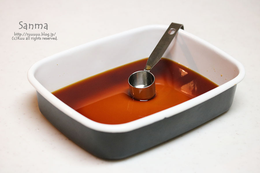 ◎みりん・・・・・大さじ3(煮切ったもの。レンジで20秒くらいチンしてください)