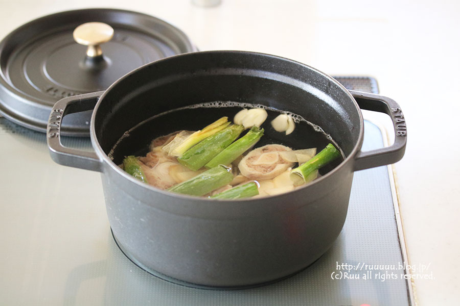 2:鍋に水(分量外)とテールを入れ、強火にかける。