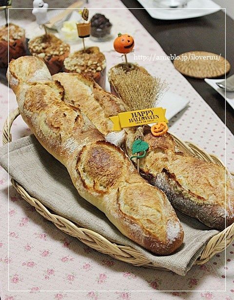 ハロウィンご飯の続き。こちらは、パンとその他もろもろ編でございます。じゃ。まずは、パン♡バゲット♡これ、何号だろうなー・・・ホシノ4号か・・・5号か・・・6号か・・・まぁ、そんなもんなんだけど、多分、5号。ホシノ5号ってことにしとこうか。もはやジャンキーの勢い