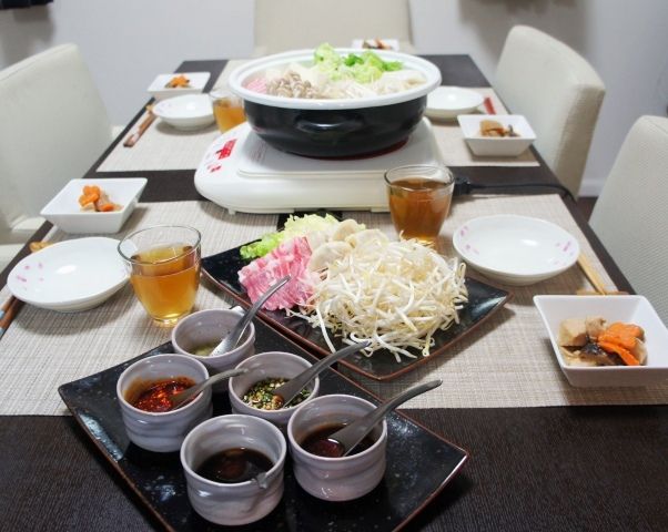 ごちと5000円とあんかけチャーハンに続き、こちらは晩ご飯編。昨日の晩ご飯はこちら。 水餃子鍋~!お鍋ができるまでの箸すすめ。 箸休めじゃなく、「箸すすめ」ね。笑人も多けりゃ・・・ 具も多い。これは替えの具材たち。人も多けりゃ・・・ タレも多い。食べラー+ポン酢の