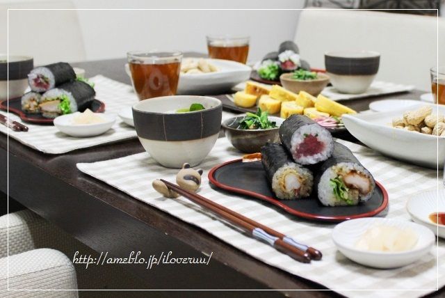 2月4日(月曜日)西の日 なんのこっちゃ。って思ったけど、今日は西に向かうと幸運に巡り合えるらしい。みなさん、外にでるなら西が吉。西へ向かいましょう。あたしも西へ向かおう。っつーわけで。昨日の晩ご飯。 恵方巻き3種・ほうれん草の胡麻和え・出汁巻き卵・なめこ蕎