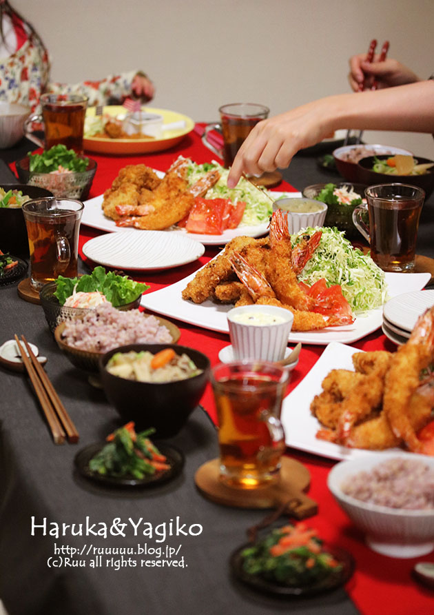 ジャンボ海老フライ・ヒレカツ・ごぼうサラダ・ほうれん草の胡麻ぽん和え・芋煮2017年という年に入ってからまだ16日しか経っていないというのに、ハリケーンに、寒波に、大雪に・・・と、ありとあらゆる災害を頂戴して、なんかもう、日本の未来とか、不安すぎるけど。とりあ