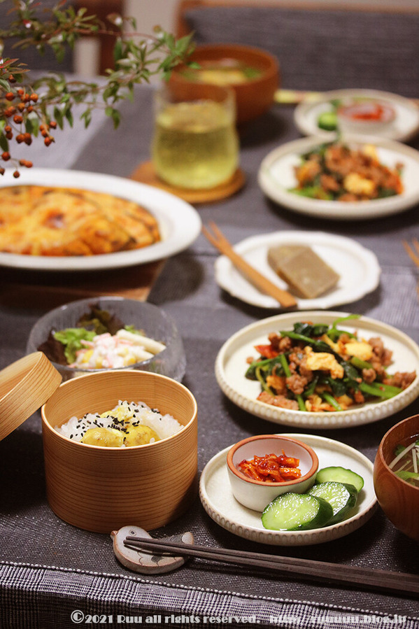 栗ご飯ほうれん草とふわふわ卵の辛味噌そぼろ炒めマカロニサラダサキイカキムチ&きゅうりの浅漬け豆腐と水菜のお吸い物栗ぼぅメニエール病との付き合いも早1ケ月。病名が分からないの頃は、不調の原因が分からず、すべてを気圧のせいにしてた(←実際めっちゃしてる)けども