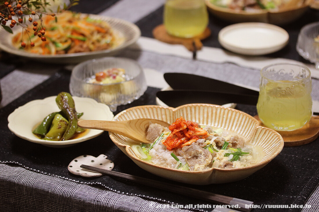 あたしは、風邪で寝込んだ時。妙に冷やし中華が食べたくなる。あの酸っぱさがたまらん。ひなはね。必ずいちご。ちなみに、おかんはね。風邪をひかない。(超健康優良児。)そして、さぶろー山は。と、言いますと。さぶろー山「肉。」 牛筋deコムタン風クッパ・ポテトサラダ・